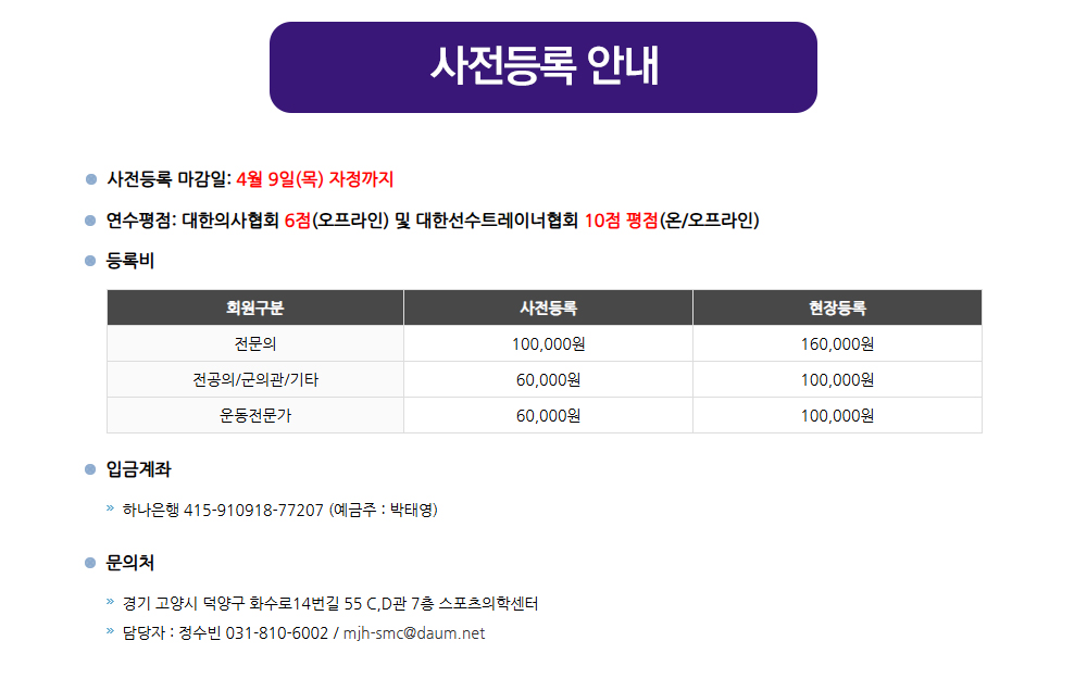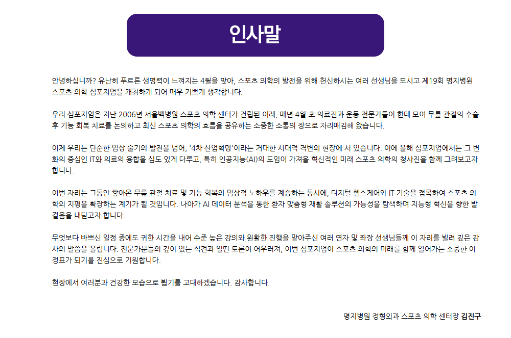 2026 명지병원 무릎관절 스포츠의학 최신지견 심포지엄(협회 평점 10점)