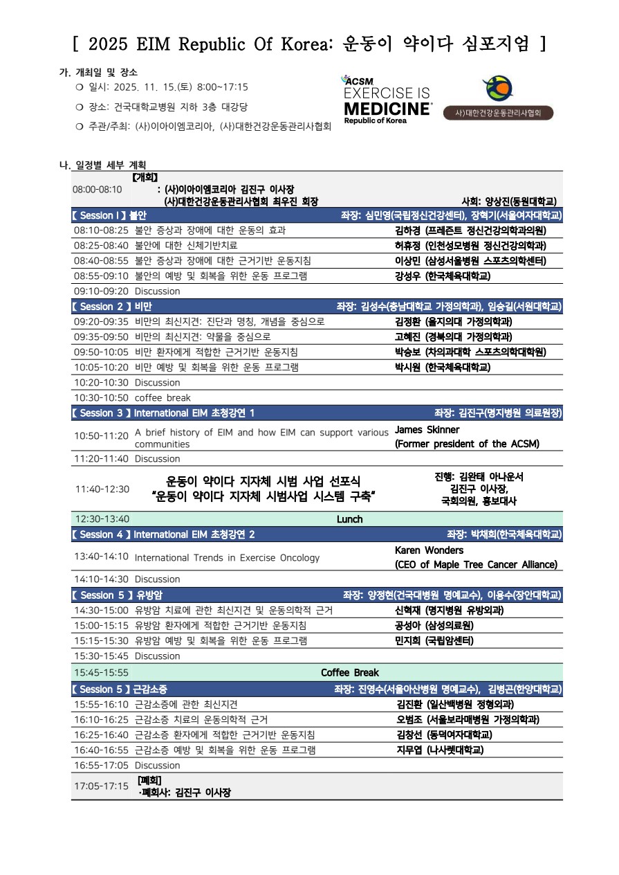 [ 2025 운동이 약이다 : EIM Republic Of Korea 심포지엄 ] (협회 평점 10점)